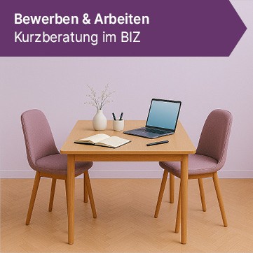 In einem Kurzgespräch von maximal 30 Minuten können Sie sich im BIZ austauschen. Für Sie da sind eine Laufbahnberaterin, eine Personalberaterin oder ein Personalberater vom RAV und eine Informationsspezialistin. Wir unterstützen Sie bei Fragen zur Bewerbung, zur Stellensuche, zum Vorstellungsgespräch und zu beruflichen sozialen Netzwerken. Weiter erhalten Sie Informationen zur Arbeitslosenversicherung und zum Vorgehen bei Kündigung sowie Stellenwechsel.
