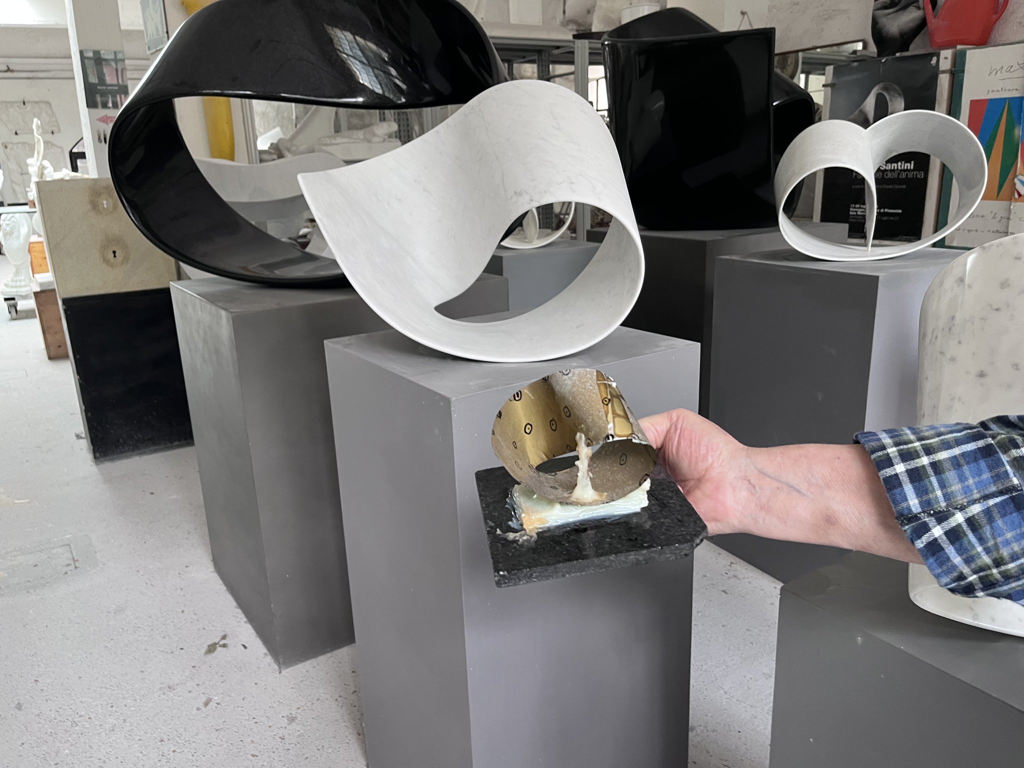 In der Ausstellung hatten auch Kinder spannende Einblicke in die Entstehung von Kunstwerken erhalten. Sie haben die Fotografien der Steinbrüche und des Ateliers von Silvio Santini bewundert und hatten zudem die Möglichkeit, die ausgestellten Skulpturen zu berühren und hautnah zu erleben.