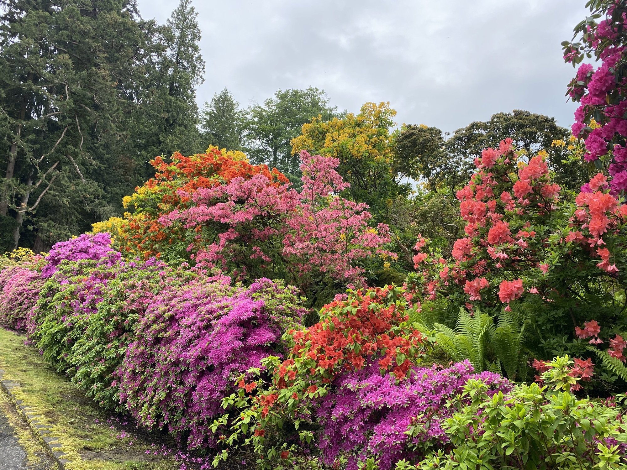 mit blühenden Rhododendren, Seerosenteich und Gärtnerei direkt am Ufer des