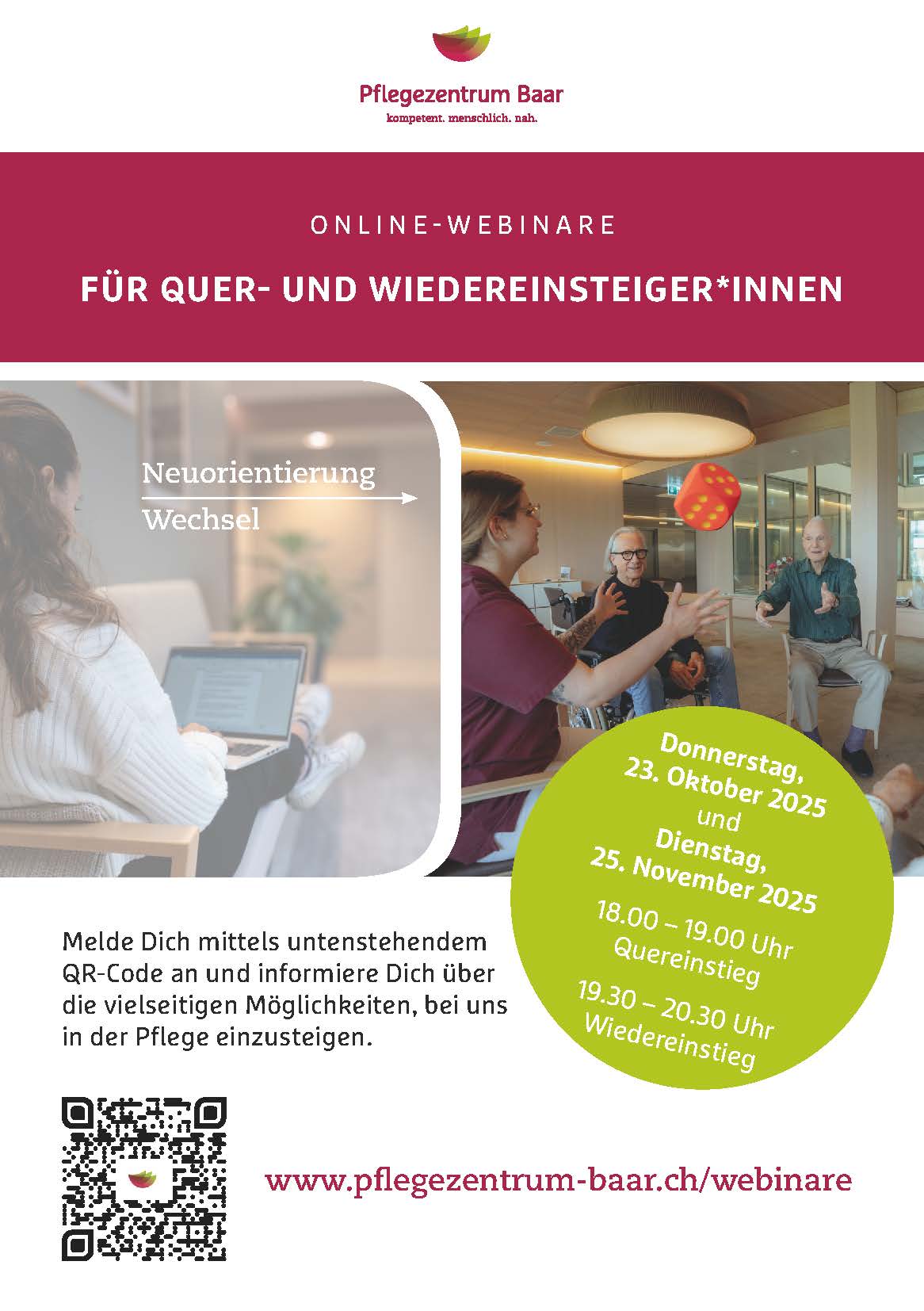 Online-Webinare für Quer- und Wiedereinsteiger*innen in die Pflege