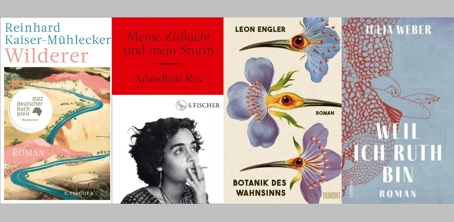 In «Wilderer» erzählt Reinhard Kaiser-Mühlecker von Herkunft und existenzieller Verlorenheit in einer Welt, die sich radikal wandelt. Der Roman zeichnet ein eindrucksvolles Porträt eines Menschen, der zwischen Tradition und Gegenwart keinen festen Halt mehr findet. «Meine Zuflucht und mein Sturm» ist die zutiefst beeindruckende Geschichte von Arundhati Roys eigenem Leben. Ein bedeutsamer und sensibel erzählter Blick der Schriftstellerin und politischen Globalisierungskritikerin auf Kindheit und Gegenwart, auf vererbten Widerstandsgeist und die Lebensrealität in Indien. In Leon Englers «Botanik des Wahnsinns» blickt der Erzähler auf die Biografie seiner Familie: ein Stammbaum des Wahnsinns. Was kann psychische Erkrankungen verstärken oder auslösen? Dieser Frage geht der deutsch-österreichische Autor und Psychologe Leon Engler in seinem zärtlichen Debütroman nach. Ruth kommt mit einem Fell zur Welt, am Ende der Kindheit verliert sie es. Alle verfallen ihr. Sie kann Menschen in Tiere verwandeln, vorübergehend teilt sie ihre «Kraft» mit jedem einzelnen Menschen. Aber dann kommt die schöne verheiratete Linda. Was soll jetzt werden? Julia Webers «Weil ich Ruth bin» ist ein Roman voller Magie in einer einzigartig sinnlichen Sprache.